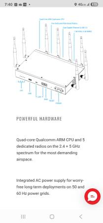 Quad-core Qualcomm ARM CPU and 5 dedicated radios on the 2.4 + 5 GHz spectrum for the most demanding airspace.
