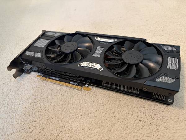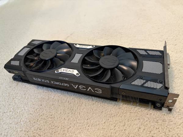 I’m selling my used NVIDIA GTX 1070 8GB graphics card in working condition in its original box as seen in the photo. Cash only please.