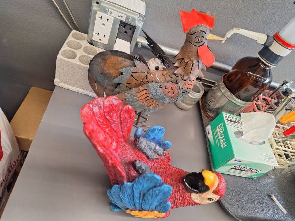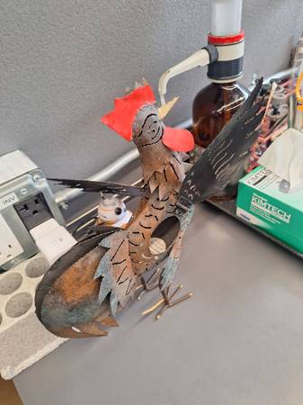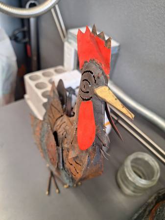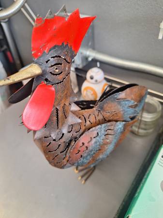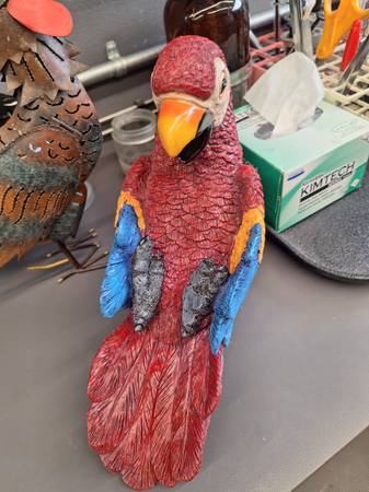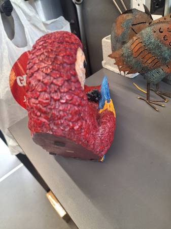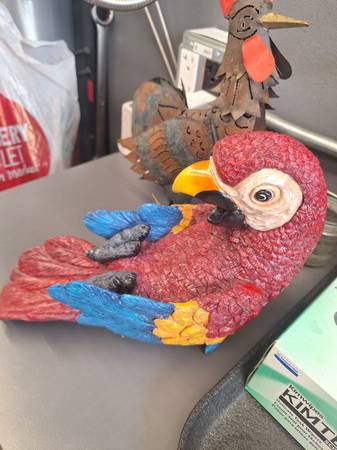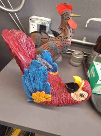 Hello everyone i have these pretty cool rustic items. You can put a little candle inside the rooster. Its very cool. The macaw is a wine bottle holder. Turn any bar or dining room into a tropical paradise with these two. Only 25$ I live in mira mesa 92126. Thanks