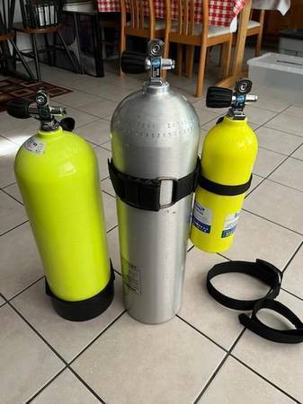 1). (3) Aluminum Scuba Tanks with Standard Yoke Valves. There were hardly ever even used, so like new condition, they just need hydro. Sold way below dive store pricing, even if need the hydro. Read below for each price. **