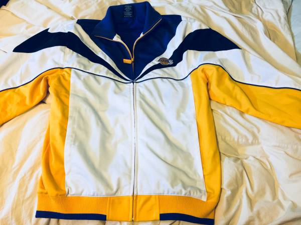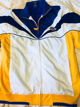 Hello there, Brand new Lakers jacket size Large for sale. Be part of the Lakers dynasty with this genuine jacket. Only selling because I have another one. Text is fastest communication.