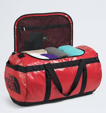 I received this red TNF Basecamp XL duffel and a yellow TNF Basecamp XXL for my birthday in September. I only removed this red XL to see the size, it still is brand new and the yellow XXL still remains new in the packaging. Both are listed for sale as I needed to size down on both to a large and medium.