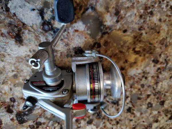 1000C Silver Small Freshwater high speed spinning reel Made in Korea Gear ratio 5.4:1 Line capacity 4 – 200 6 – 160 8 – 110 10 - 80 Weighs about 8 oz Right or left hand retrieve Very good used...