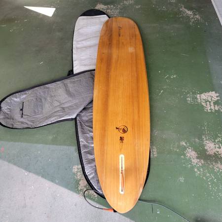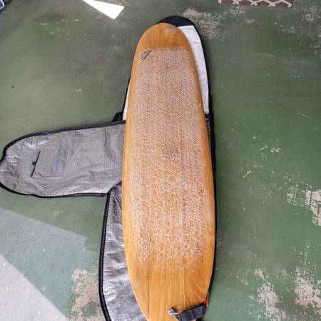 9'3" longboard surfboard. Water tight, dings professionally repaired at Joe Ropers. Price includes, fin, leash and board bag.