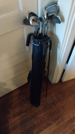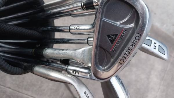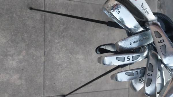 Various irons. No drivers or putters. Bag included. 9 clubs in all. Grips in good condition. Bag included.
