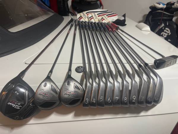 Here’s your chance to own a very nice set of Ping Eye II irons 3-W just regripped, beautiful Never Compromise center shafted putter, Titleist Vokey wedges 54 and 60 also new grips, Titleist 917 Driver and Titleist 3 and 5 980F fairway metals. All new grips as well.
