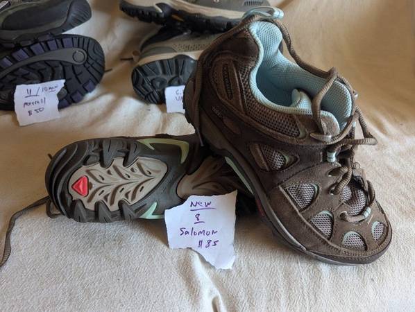$90, merell sz 11 waterproof hiking boots, cost $220. best on market, as new, black 20f rated insulated, black