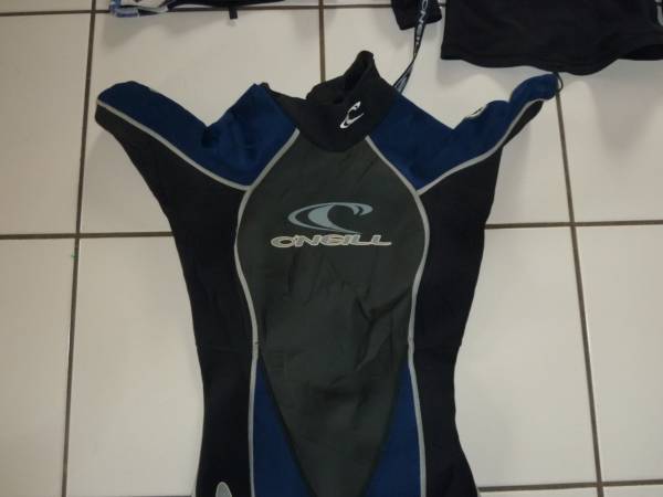 $30, 2mm, new size 4, oneill, black /blue, womens Xs-small or kids size medium, spring suit = short arms/legs, zipper back.