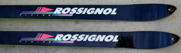 These are the Rossignol Slalom STS Carbon Skis in size 195cm. They have the Marker M900 bindings on them. The skis are in great shape, and so are the bindings. The ski edges are sharp and free from gouges – no rock skiing on these. In fact, not much downhill skiing mileage at all. The tops are in very good condition, with great coloring. (Note that the skis have a super high gloss black finish, therefore it is nearly impossible to take a picture of them without them reflecting like a mirror. The white striations in the pictures are from the boards in the top of my porch reflecting down!) $89.