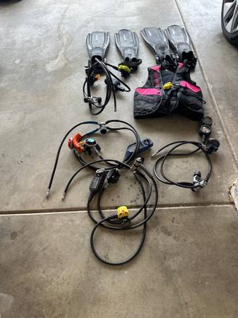 Scuba octopuses with console computer first and second stage, scuba pro, Mares, Sherwood, Seaquest, BC, Mars and Aquaflex fins Complete octopuses with computers 150 Seaquest Infiniti BC women’s...