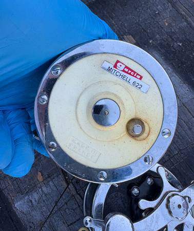 • Garcia Mitchell 622 reel (Made in France) – serial #542306. Highly collectible early Mitchell saltwater model, valued $40–$120 depending on condition