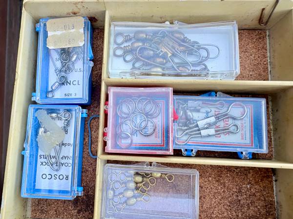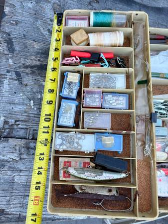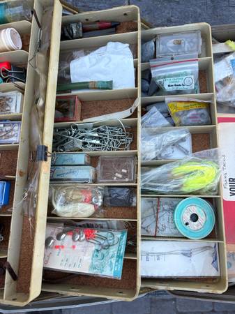 • Organized compartments still labeled and filled with original tackle — exactly how Gus left it