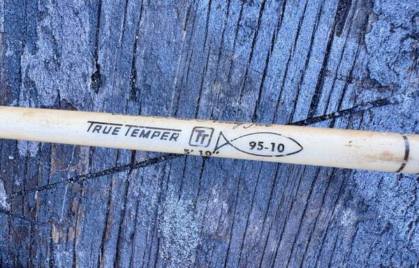 • True Temper 95-10 fiberglass rod, 5’10”, with solid wood handle grip