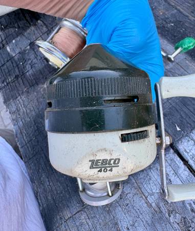 • Zebco 404 spincast reel – classic green & cream finish, still works