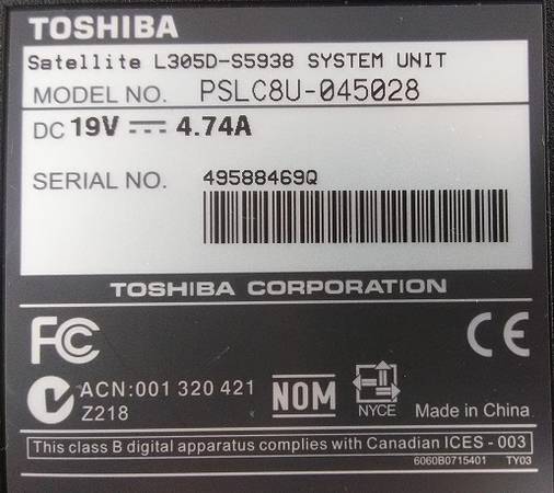 Toshiba satellite L350-s5938 Display Size 15.4 inches (Vary good size for graphics.) Be sure to click "more ads by this seller" under the map. → Good Laptop, Power supply, Battery AMD Turion X2...