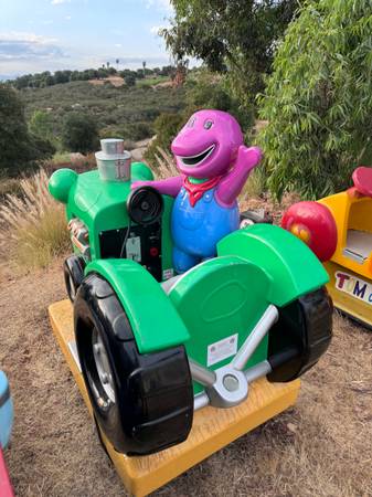 RARE licensed Barney Tractor in good working condition manufactured by Jolly Roger Amusements from Britain. The ride works off quarters with rock and roll action. Great for businesses, parties, events and etc!