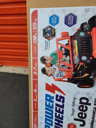 I also just found a 12V Fisher Price Power Wheels Jeep Wrangler 2 seater, with tough talking walkie talkie and speaker. Assembly required. Brand new $300. see pictures.
