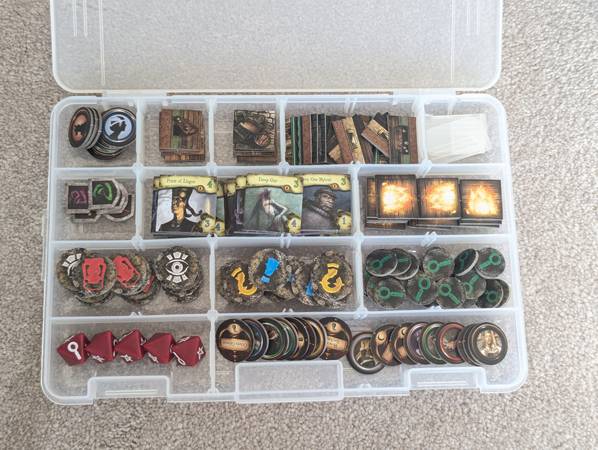 Various prices. Please check below for info. DESCENT, Journeys in the Dark 2nd ed. - $50 + all mini figures custom painted + tokens organized in Plano boxes --------------------------- DICE THRONE,...