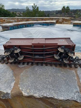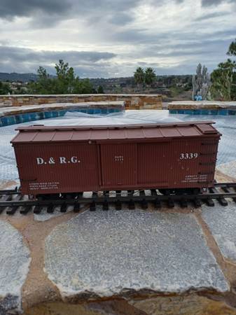 G scale box cars. These are not made by LGB. Not sure of the manufacturer. Some have upgraded stainless steel wheels for outdoor use. $30 each, or less if buying the lot