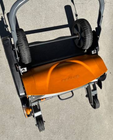Fiskars StaySharp Max Reel Mower is an eco friendly, manual lawn mower that requires no gas, oil, or electricity. Its StaySharp cutting system minimizes friction and blade wear, so sharpening is rarely needed. With an 18 inch cutting width and adjustable height settings, it is ideal for clean, quiet lawn care.