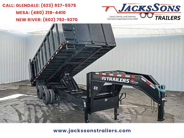 **STANDARD FEATURES** 2025 20' x 102" Gooseneck Tandem Axle Dump Trailer – 25K GVWR | Duals | 48" Sides | Heavy-Duty Barn Doors Maximum Strength. Maximum Payload. Built for the toughest jobs the 20x102 Gooseneck Dump Trailer delivers serious hauling power with a massive 25 000 lb GVWR dual wheel axles and 48" tall sides for maximum volume capacity. Whether you're handling demolition debris aggregate scrap or large-scale cleanup this trailer is designed to perform. The Gooseneck 2 5/16" Square Coupler (30K Rated) ensures secure stable towing behind your HD truck while the Primer + Black Powder Coat finish keeps it protected from the elements. Key Specifications: Size: 20' Length x 102" Width GVWR: 25 000 lbs Axles: (2) 12 000 lb Tandem Axles w/ Electric Brakes – Dual Wheel Spring Suspension Tires: 14-ply Load Range G Dual Tires and Wheels Coupler: Gooseneck 2-5/16" Square Coupler – 30 000 lb Rated Sides: 48" High – Increased volume for larger loads Gate: Rear Barn Doors – Ideal for heavy debris unloading Finish: Primer + Black Powder Coat for long-term durability From construction crews to agricultural operations this Gooseneck Dual Dump Trailer brings industry-leading strength stability and capacity to your job site. **CALL OR TEXT US FOR MORE INFORMATION! ** NOT ALL OF OUR INVENTORY IS ONLINE. CALL US TO SEE IF WE CAN MEET YOUR NEEDS! ASK ABOUT OUR RENT-TO-OWN PROGRAM! WE FINANCE! GO TO OUR WEB PAGE AND CLICK ON FINANCE FOR OUR OPTIONS. More of our stock inventory HERE - # https://www.jackssonstrailers.com/all-inventory ###(https://www.jackssonstrailers.com/all-inventory%5D) ( https://www.jackssonstrailers.com/all-inventory ) or Craigslist search - JacksSons Trailers to see all of our active postings New River Location: 43912 N Black Canyon Hwy New River AZ 85087 (602)792-9270 Hours: M-F 8:00 am - 5:00 pm Sat 9:00 am - 2:00 pm. Glendale Location: 7020 NW Grand Ave Glendale AZ 85301 (623)937-5575 Hours: M-F 8:00 am - 5:00 pm Sat 9:00 am - 2:00 pm Mesa Location: 3054 E Main St Mesa AZ 85213 (480)218-4410 Hours: M-F 8:00 am - 5:00 pm Sat 9:00 am - 2:00 pm The Advertised Prices Do Not Include: *Doc Fee *Licensing *Tax *Environmental Fee Thank you for visiting JacksSon's Trailers. We currently have three Phoenix area locations to serve you. We keep approximately 700 units in stock from the highest quality manufacturers. Our goal is to provide you with a great selection of quality products to help you with the task at hand. Our dedicated staff is here to help you. Need to service or want to modify your existing unit? See our service professionals for sound advice and solutions. Do you need help finding what you need in stock? Please take the time to speak with a member of our knowledgeable sales staff.
