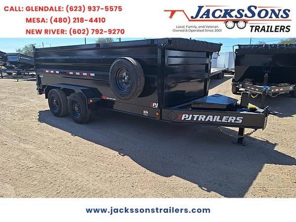 **STANDARD FEATURES** 2025 16' x 83" Heavy-Duty Low-Pro Dump Trailer – 22K GVWR | 48" Sides | Pintle Hitch | Atlas Hydraulic Jack | Solar Charger Extreme Capacity. Pro-Grade Components. Built for Big Jobs. When standard dump trailers just won't cut it this 16x83 Heavy-Duty Low-Pro Dump Trailer is ready to rise to the challenge. Engineered for commercial-grade performance it boasts a massive 22 000 lb GVWR 10K torsion axles and 4-foot tall sides for unmatched load volume and strength. This model features a 3" Pintle Eye hitch for superior towing security in extreme-duty applications and includes a Hydraulic Atlas Jack for fast effortless hook-up and drop. With an integrated solar battery charger your dump system stays powered and ready without needing external charging. Key Specifications: Size: 16' Length x 83" Width – Low Profile for stability and easy loading GVWR: 22 000 lbs Axles: (2) 10 000 lb Electric Brake Axles – Torsion Suspension for smoother ride Tires: 235/75R17.5" Load Range J – Single Wheel HD Commercial Tires Coupler: 3" Pintle Eye – Rugged and secure for industrial towing Jack: 1 Hydraulic Atlas Jack (BP Only) – Fast and powerful lifting Sides: 48" (4 ft) Steel Sides – Increased capacity for bulk hauling Gate: Split/Spreader Combo – Perfect for flexible dumping and rear access Finish: Primer + Black Powder Coat – Weather-resistant and built to last Charging: Solar Battery Charger – Keeps hydraulic system ready in the field Whether you're hauling demo debris large landscape loads or jobsite materials the HD 16x83 Low-Pro Dump Trailer is the ultimate solution for high-demand operations. **CALL OR TEXT US FOR MORE INFORMATION! ** NOT ALL OF OUR INVENTORY IS ONLINE. CALL US TO SEE IF WE CAN MEET YOUR NEEDS! ASK ABOUT OUR RENT-TO-OWN PROGRAM! WE FINANCE! GO TO OUR WEB PAGE AND CLICK ON FINANCE FOR OUR OPTIONS. More of our stock inventory HERE - # https://www.jackssonstrailers.com/all-inventory ###(https://www.jackssonstrailers.com/all-inventory%5D) ( https://www.jackssonstrailers.com/all-inventory ) or Craigslist search - JacksSons Trailers to see all of our active postings New River Location: 43912 N Black Canyon Hwy New River AZ 85087 (602)792-9270 Hours: M-F 8:00 am - 5:00 pm Sat 9:00 am - 2:00 pm. Glendale Location: 7020 NW Grand Ave Glendale AZ 85301 (623)937-5575 Hours: M-F 8:00 am - 5:00 pm Sat 9:00 am - 2:00 pm Mesa Location: 3054 E Main St Mesa AZ 85213 (480)218-4410 Hours: M-F 8:00 am - 5:00 pm Sat 9:00 am - 2:00 pm The Advertised Prices Do Not Include: *Doc Fee *Licensing *Tax *Environmental Fee Thank you for visiting JacksSon's Trailers. We currently have three Phoenix area locations to serve you. We keep approximately 700 units in stock from the highest quality manufacturers. Our goal is to provide you with a great selection of quality products to help you with the task at hand. Our dedicated staff is here to help you. Need to service or want to modify your existing unit? See our service professionals for sound advice and solutions. Do you need help finding what you need in stock? Please take the time to speak with a member of our knowledgeable sales staff.