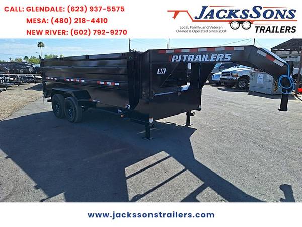 **STANDARD FEATURES** 2025 16' x 83" Gooseneck Low Pro Dump Trailer – 15 680 GVWR | 48" High Sides | 6" Cylinder Upgrade | Black Powder Coat High-Side Capacity. Gooseneck Control. Maximum Dumping Power. Designed for professionals who demand maximum volume and control the 16x83 Gooseneck Low Pro Dump Trailer with 48" tall sides is your heavy-duty solution for large-scale hauling. With a 15 680 lb GVWR dual 7K axles and a 6" hydraulic cylinder upgrade this unit is built to move more material—faster and easier. The Gooseneck 2-5/16" Round Coupler (rated to 25 000 lbs) provides superior stability for heavy loads while the split/spreader gate offers flexible dumping options. All wrapped in a durable primer + black powder coat finish that stands up to the elements. Key Features: Size: 16' Length x 83" Width – Low Profile High Side Configuration GVWR: 15 680 lbs Axles: (2) 7 000 lb Electric Brake Axles – Spring Suspension Sides: 48" Tall Steel Sides – Ideal for mulch brush debris gravel and bulk loads Coupler: Gooseneck 2-5/16" Round – 25 000 lb Rating for confident towing Lift: 6" Hydraulic Cylinder Upgrade – Increased lifting power and reliability Gate: Split/Spreader Combo Gate – Dump or load with flexibility Finish: Primer + Black Powder Coat – Rugged and corrosion-resistant If you're hauling large volumes and want the control of a gooseneck with the strength of a high-side dump this IronBull 16x83 Gooseneck Dump Trailer is the answer. **CALL OR TEXT US FOR MORE INFORMATION! ** NOT ALL OF OUR INVENTORY IS ONLINE. CALL US TO SEE IF WE CAN MEET YOUR NEEDS! ASK ABOUT OUR RENT-TO-OWN PROGRAM! WE FINANCE! GO TO OUR WEB PAGE AND CLICK ON FINANCE FOR OUR OPTIONS. More of our stock inventory HERE - # https://www.jackssonstrailers.com/all-inventory ###(https://www.jackssonstrailers.com/all-inventory%5D) ( https://www.jackssonstrailers.com/all-inventory ) or Craigslist search - JacksSons Trailers to see all of our active postings New River Location: 43912 N Black Canyon Hwy New River AZ 85087 (602)792-9270 Hours: M-F 8:00 am - 5:00 pm Sat 9:00 am - 2:00 pm. Glendale Location: 7020 NW Grand Ave Glendale AZ 85301 (623)937-5575 Hours: M-F 8:00 am - 5:00 pm Sat 9:00 am - 2:00 pm Mesa Location: 3054 E Main St Mesa AZ 85213 (480)218-4410 Hours: M-F 8:00 am - 5:00 pm Sat 9:00 am - 2:00 pm The Advertised Prices Do Not Include: *Doc Fee *Licensing *Tax *Environmental Fee Thank you for visiting JacksSon's Trailers. We currently have three Phoenix area locations to serve you. We keep approximately 700 units in stock from the highest quality manufacturers. Our goal is to provide you with a great selection of quality products to help you with the task at hand. Our dedicated staff is here to help you. Need to service or want to modify your existing unit? See our service professionals for sound advice and solutions. Do you need help finding what you need in stock? Please take the time to speak with a member of our knowledgeable sales staff.