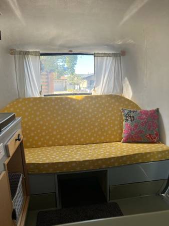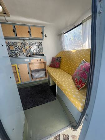 This is a 1972 vintage 13’ camper. I purchased this several years ago and have been slowly restoring it over time. It has new paint, tires, cabinet doors, electrical control box, water tank support and battery. I needs a new fan some electrical and ongoing maintainence.