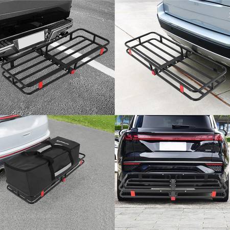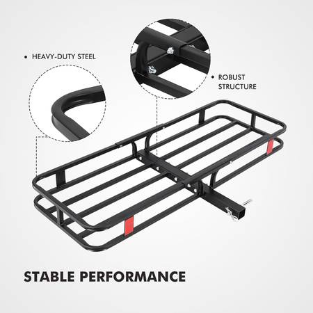New in the box can carry up to 500 Lbs Hitch Mount Cargo Carrier Basket 53" x19" x 6", Rear Luggage Rack Basket Fits 2" Receiver for Car Camping Traveling, Black Cargo Carrier Basket