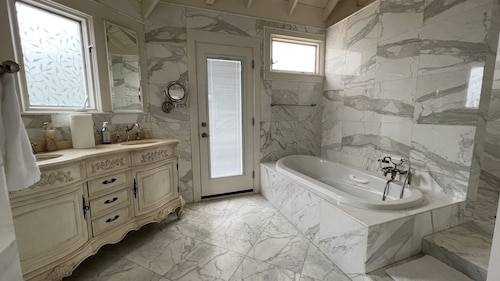 The full size bathroom has a separate shower and bathtub. The bathtub comes with jacuzzi.