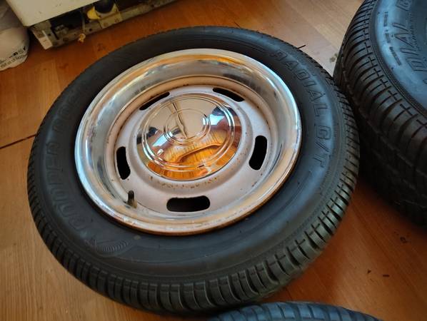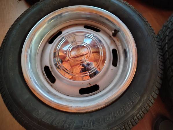 Chevrolet Rally Wheels Mounted on Cooper Cobra Tires.