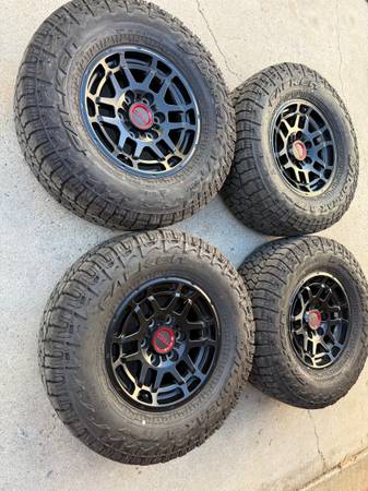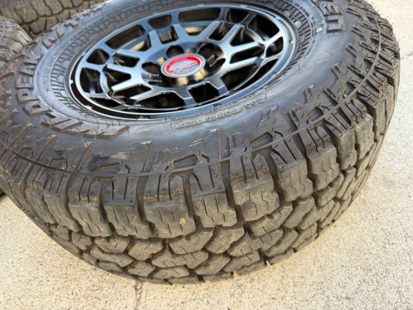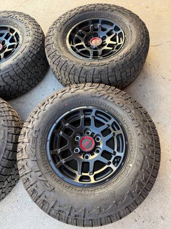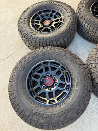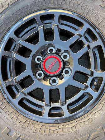 2023 Toyota Tacoma TRD PRO wheels and tires in like new condition. Wheels are authentic Toyota Brand not cheap aftermarkets. Selling with like new Falken Wildpeak A/T 4W LT 265/70/16 tires (100 miles on tires). $1950 FIRM.