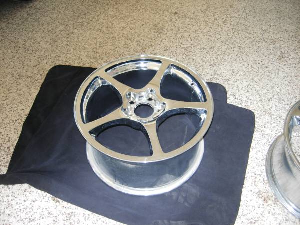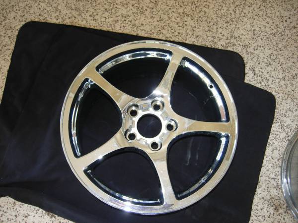 Wheel size is 18x9.5 rear for 1997-2004 Vette. It is Chrome and in new condition. So if your wheel has some curb damage. Or bent here is a great replacement. Thanks for looking