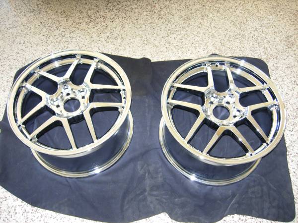 This is new wheel never mounted. The size is 18.9.5 This fits 1997-2004. Corvette. We have two wheels at this price. $250.00 each or the pair for $490.00 for the pair. Thanks for looking.