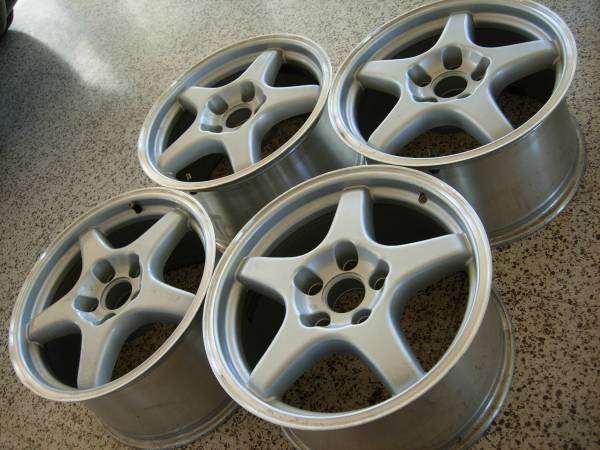 The wheels have a machined lip and silver center. In excellent condition. Wheel size is 17x9.5 Will fit your 88-96 Vette. Original GM Wheels. $495.00 Or best cash offer. Thanks for looking.