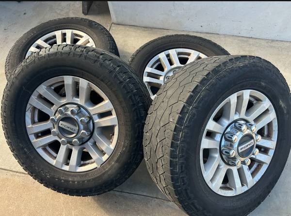 FORD F-250 wheels & tires. includes 2 crnter caps. Tires may have a little life left. All hold air. 250 for all.