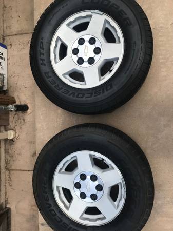 Came off a 2005 Silverado 1500. OEM Silverado Wheels & Caps 6X139mm Tires are Cooper Discoverer HTP, 65000 mile rated tires. 265/70-17 Only 21,511 miles on tires. Freshly balanced. I have...