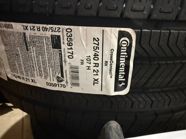 new Set of 2 Continental Cross Contact RX 275/40R21 107H Never used. Ordered wrong size, can’t return. Send back tire to original place cost me more shipping then buy another 2 tires. Walmart sell...