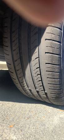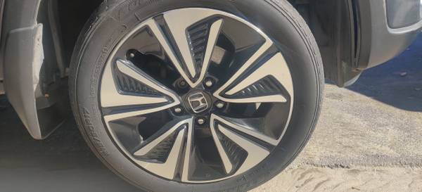 Set of 4 factory Honda aluminum wheels w/tires. They're a 5 lug bolt pattern so they'll fit other models as long as the bolt pattern is the same. The 2 wheels on driver side have some scuffing/scratches. Recommend replacing tires soon as they're approaching the end of their life.