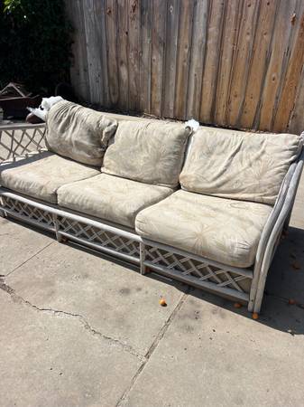 We're moving and downsizing our stuff. Outdoor furniture set (needs reupholstering). It's heavy as the sofa has a pull out bed. All items need to pick hauled out and picked up by buyer. If this ad...