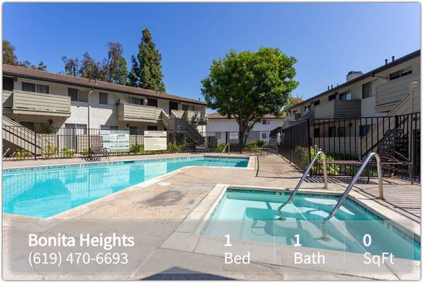 Welcome to Bonita Heights, a beautiful residential community featuring one & two bedroom apartments in Bonita, CA overlooking a lush river valley. Our spacious floor plans each offer private outdoor space and many unique amenities. We also feature a welcoming community area with a pool, spa, BBQs and more. Along with exceptional professional service, Bonita Heights is an ideal location for those who are looking for a quiet neighborhood yet close to major freeways for an easy commute. Contact us to schedule a tour today!