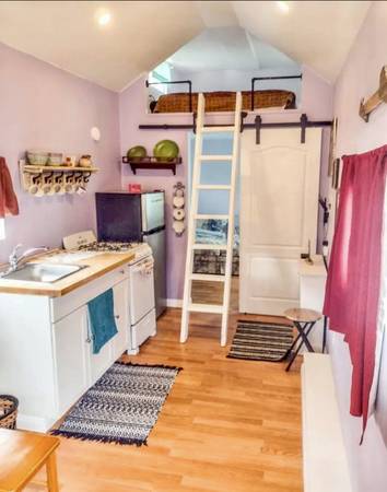 Our tiny homes feature full bathrooms with toilet, sink and shower as well as full kitchens/kitchenettes (depends on unit) and a living area with 1 bedroom and lofts.