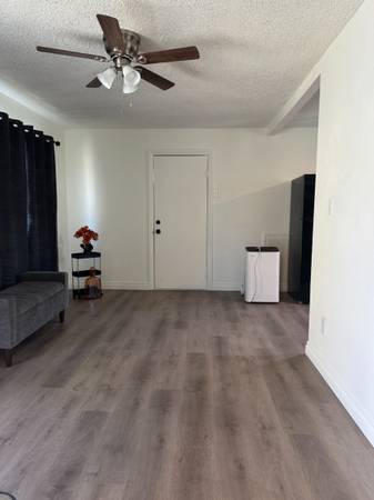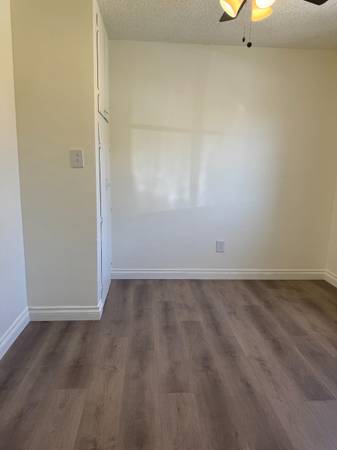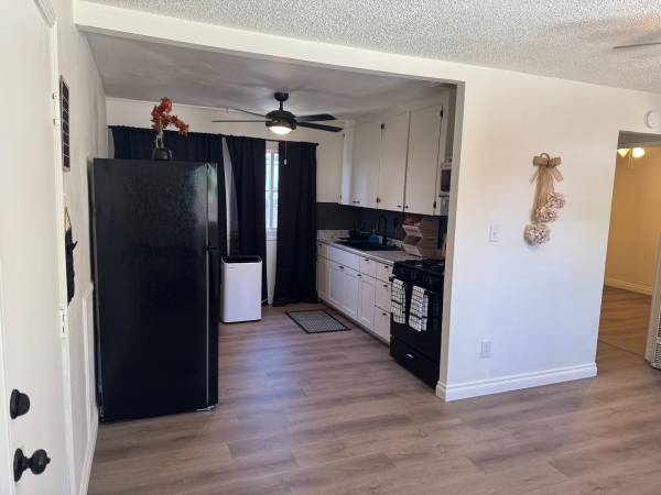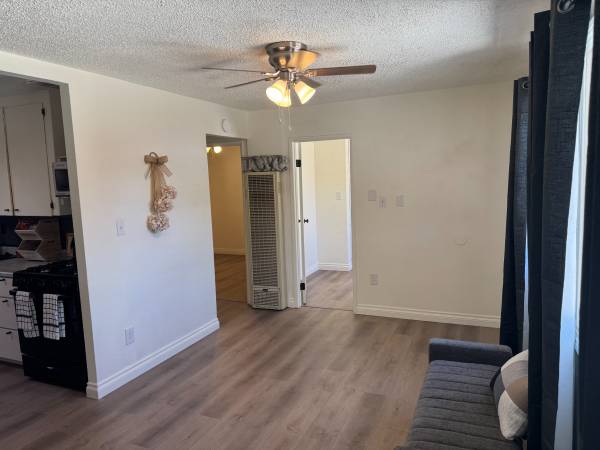 Cute backyard where you can set up and relax and do your thing, propane barbeque allowed. Washer/Dryer in your own outside. This unit comes with a warm wall furnace for the cold chilly nights. It has a cooling system(swamp Cooler) which saves on electricity bill (more than half) and you have ceiling fans/lights as well when the summer rolls around again!