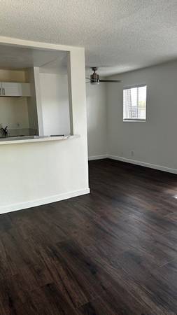 This spacious apartment home has been newly renovated, new wood floors, ceiling fan, new appliances, A/C, new paint, 2 patios, assigned parking, on site, laundry, and a swimming pool garden style community.