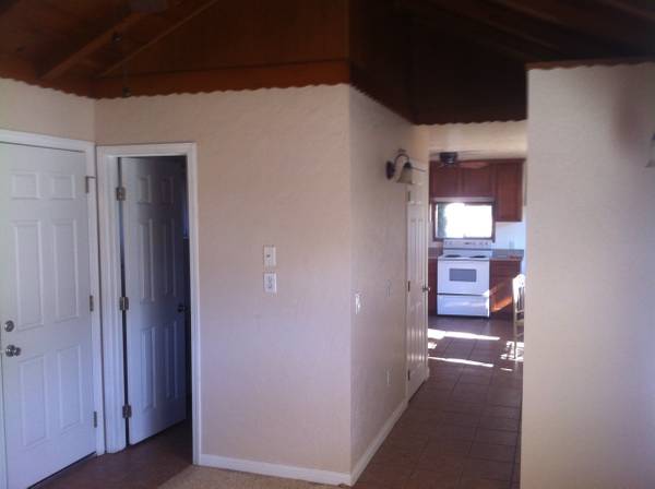 Very quiet area located near El Monte park in Lakeside. This unit is small. I can only handle one person. This is a separate unit on a 3 acre property away from the main house yet close to another rental. This is country living. There is a picnic and horseshoe area for your use. The unit has a nice private covered and enclosed back patio with also front and side yard. There is a washer and dryer on the back patio. Newer cabinets and granite kitchen. Tiled shower. New carpet. A/C-heater wall unit is amazingly strong. Parking is next to the unit.