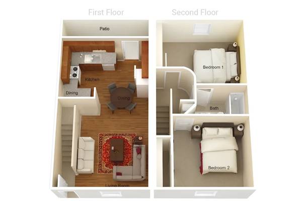 * 2 Bedroom 1.5 Bath Townhome | 1,140 sq. ft. starting at $2,650–$2,705