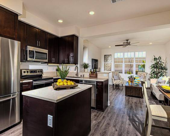 Paseo Village offers a perfect blend of urban sophistication and country tranquility, situated just a half-hour drive from the bustling city of San Diego. Residents enjoy upscale apartment features such as high ceilings, luxury finishes, stainless steel appliances, and smart home automation, creating a modern and comfortable living environment. The community boasts a beautiful, exclusive green lawn ideal for picnics, outdoor activities, and relaxation under the California sun. Spacious three-bedroom townhomes provide ample space with walk-in closets, custom wood cabinetry, quartz countertops, and enormous windows that fill the homes with natural light. Each residence includes a two-car attached garage with direct access, along with private yards or patios for outdoor enjoyment. *with move-in OAC, select homes, leases. Restrictions apply