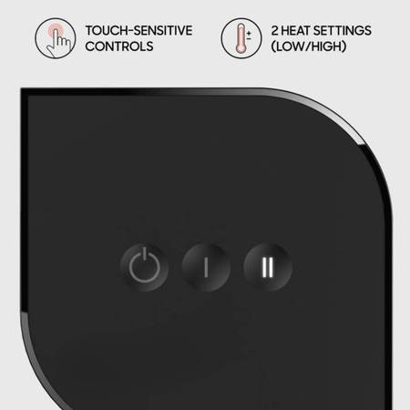 Select between 2 heat settings (low 750-Watt/high 1500-Watt) with touch sensitive controls.