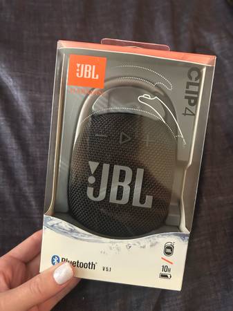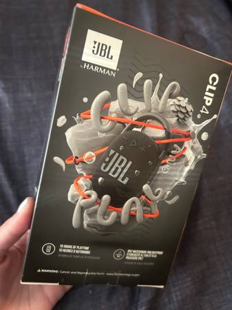10 hrs playtime. New in box, never opened. Bluetooth portable speaker. Integrated carabiner for easy carrying/ hanging. Waterproof and dust proof. Retail for $65.