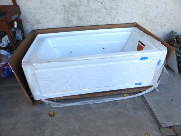 New with a fixable leak in one of the hoses. It was being installed when the leak was discovered so we got a replacement tub under warranty. See photos for a picture of the hose that leaks. This tub sells new for $2,536. Asking only $550. Selling as is.